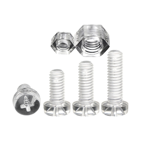 PC透明十字圆头螺钉塑料绝缘亚克力十字盘头螺钉和螺母组M3 M4